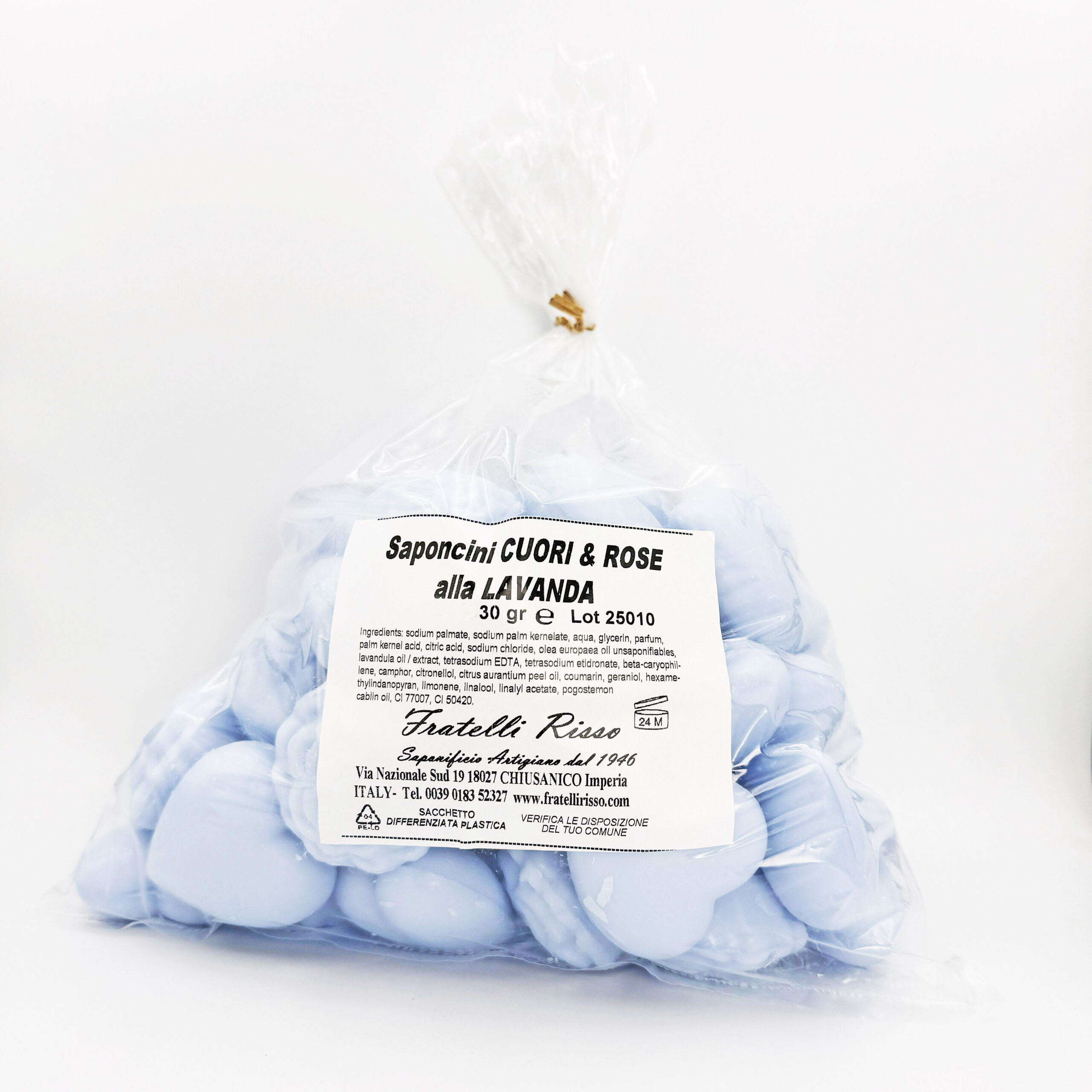 Saponcini gr 30 a forma di Cuori e Rose profumati alla Lavanda.